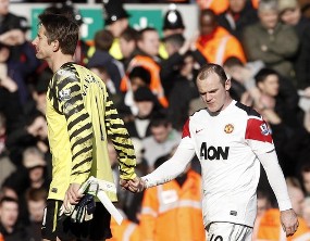 Menghadapi Marseille (Liga Champions) pada 23 Februari di Stade Velodrome, Wayne Rooney dkk. menahan tuan rumah tanpa gol. Kemudian saat melawat ke markas Wigan Athletic, The Red Devils meraih kemenangan meyakinkan 4-0. Dua laga tandang terakhir berujung kekalahan. MU takluk 1-2 dari Chelsea dan 1-3 dari Liverpool.