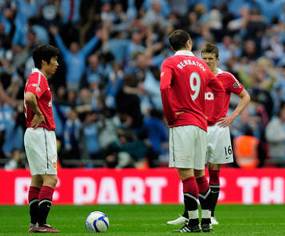 Di Stadion Wembley, Sabtu (16/4/2011), MU ditekuk Manchester City 0-1 di semifinal Piala FA. Kegagalan di Piala FA membuat MU tinggal punya peluang meraih gelar di Liga Inggris dan Liga Champions.