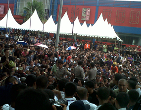 Ya, memang, tak semua massa yang rela antre di acara yang ricuh ini adalah penjual. Tentu ada juga penguna yang memang penasaran dan mencari harga murah untuk mendapatkan BlackBerry berseri 9790 tersebut.